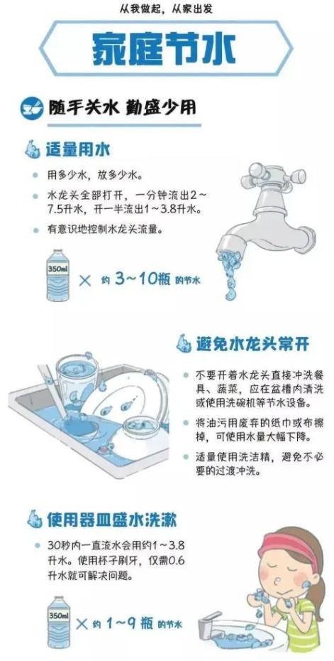 你知道吗?世界每3人有1人无法获得安全饮水。我国人均水资源占有量不足世界水平的1/3,近2/3城市不同程度缺水。据分析,普通家庭注意改掉不良习惯,就能节水30%左右。今天是世界水日,你有哪些节水习惯?节约用水,从你我做起,别让我们的眼泪成为最后一滴水。