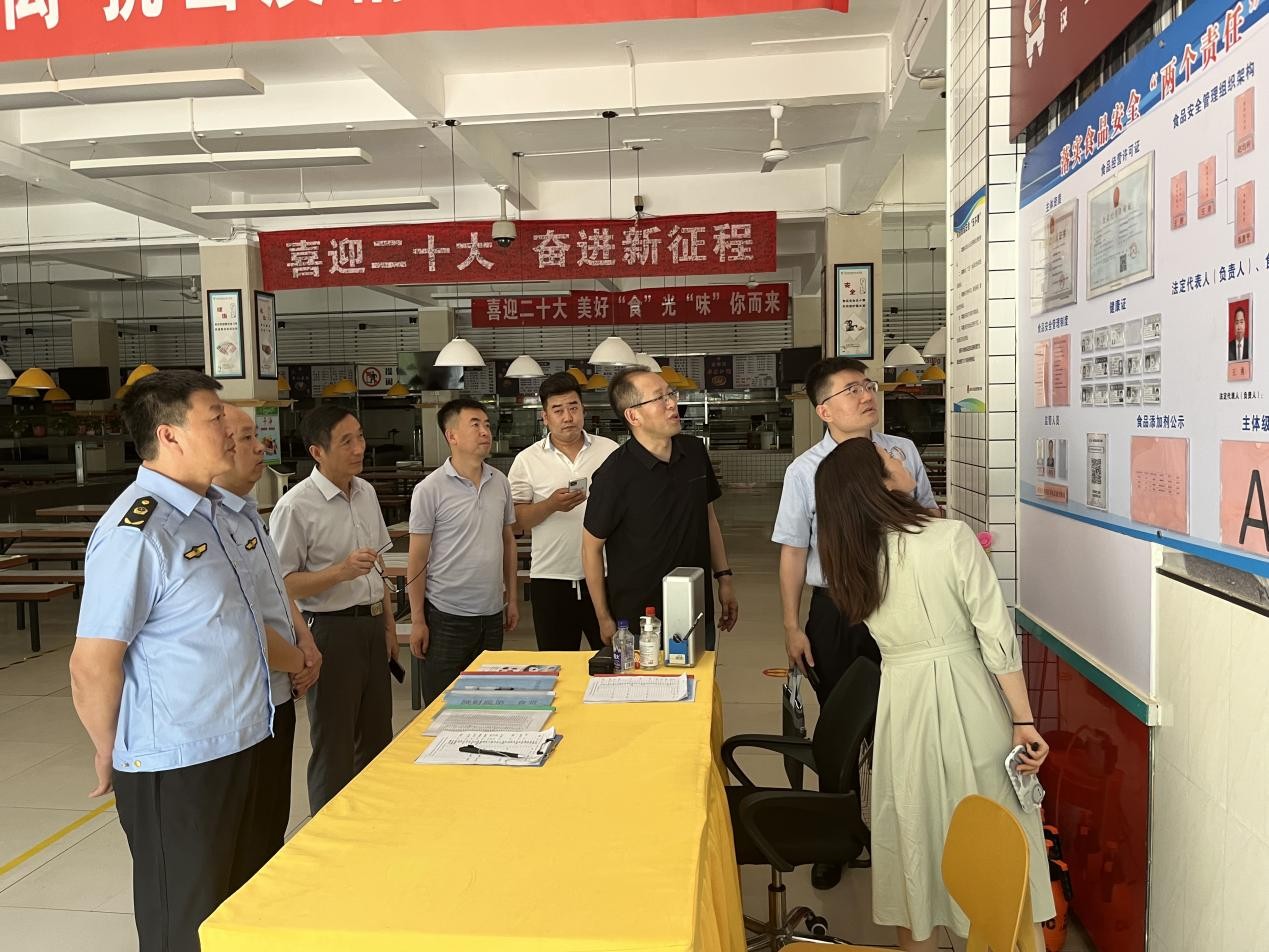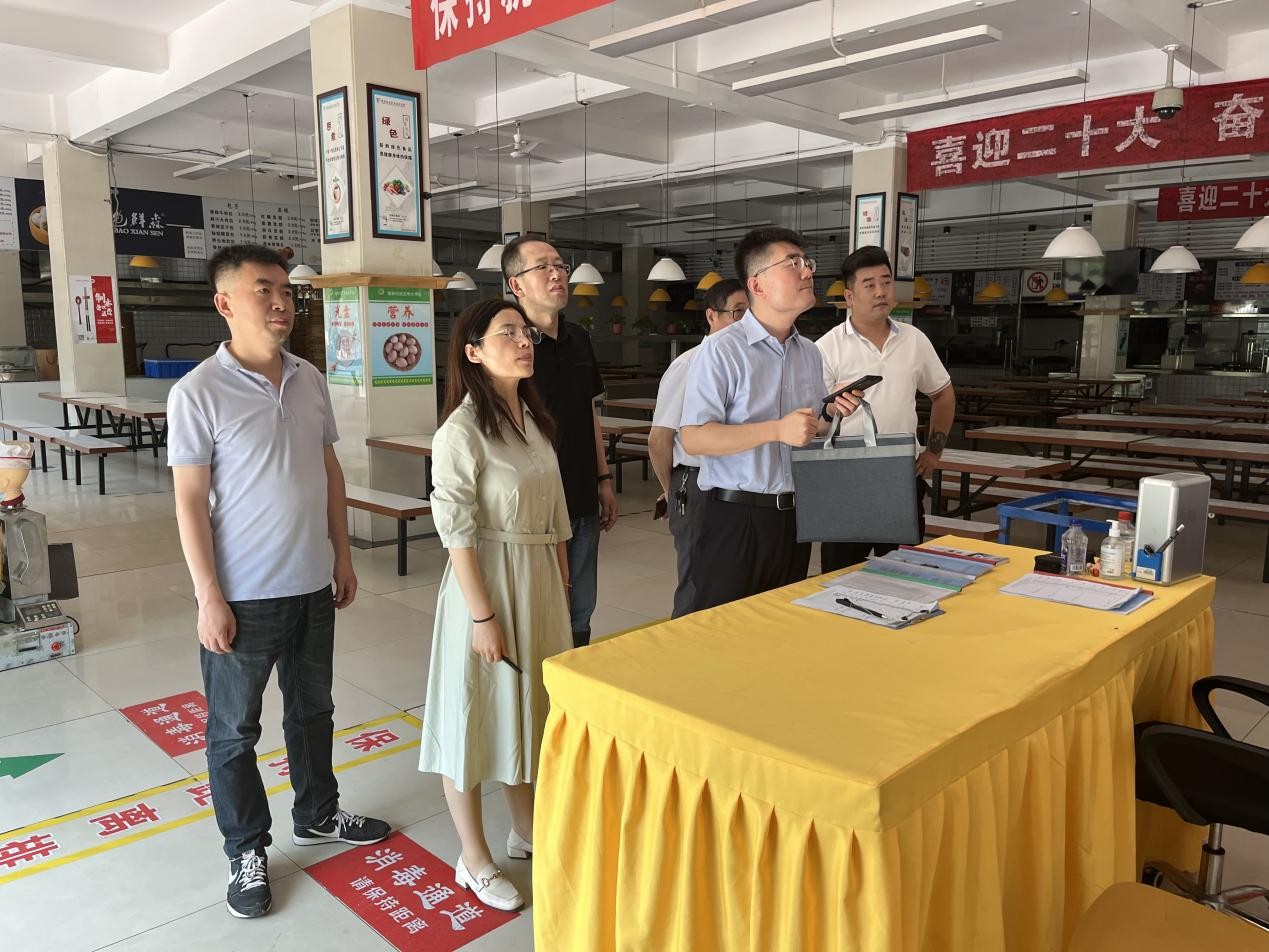 通过现场检查、查阅资料、登陆“陕食安”小程序等方式对食堂经营企业主体责任落实情况进行督查。详细检查了各食堂“两个责任”公示牌相关情况及日管控、周排查、月调度线上登记情况。市局领导在与总务处负责人、食堂驻校经理的交流中,对当前及下一步学校食品安全方面的要点工作进行部署和安排。