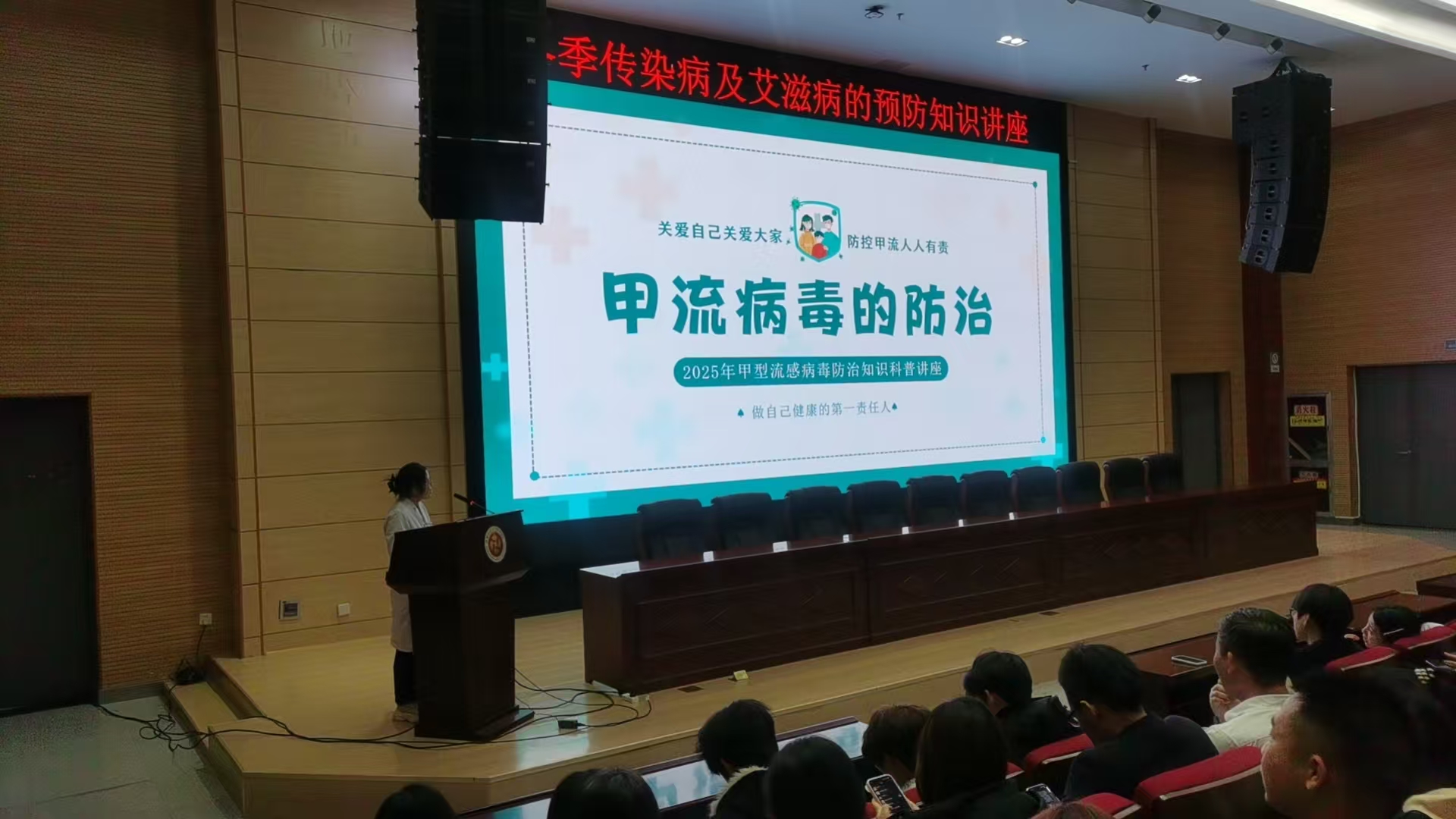 校医院郭妮医生则针对当前“强势来袭”的甲流,为同学们带来了及时、实用的防控指南。她从甲流与普通感冒的区别讲起,详细介绍了其高烧、全身酸痛等典型症状,并重点讲解了日常预防、健康监测、科学就医及合理用药等核心知识。郭医生提醒同学们,务必养成良好的个人卫生习惯,保持环境通风,积极接种疫苗,构筑起校园免疫屏障。