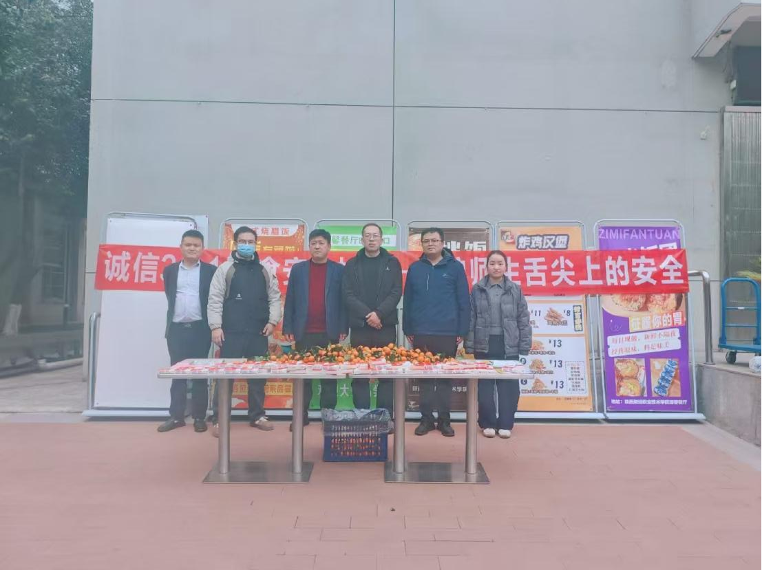 为进一步强化校园食品安全管理,普及食品安全知识,切实守护广大师生身体健康与饮食安全,3月19日中午,我校清馨食堂举办食品安全主题活动。总务处处长达航行、膳食科科长吴楠,膳食科工作人员及西安汕鸿餐饮管理有限公司相关工作人员共同参加本次活动。